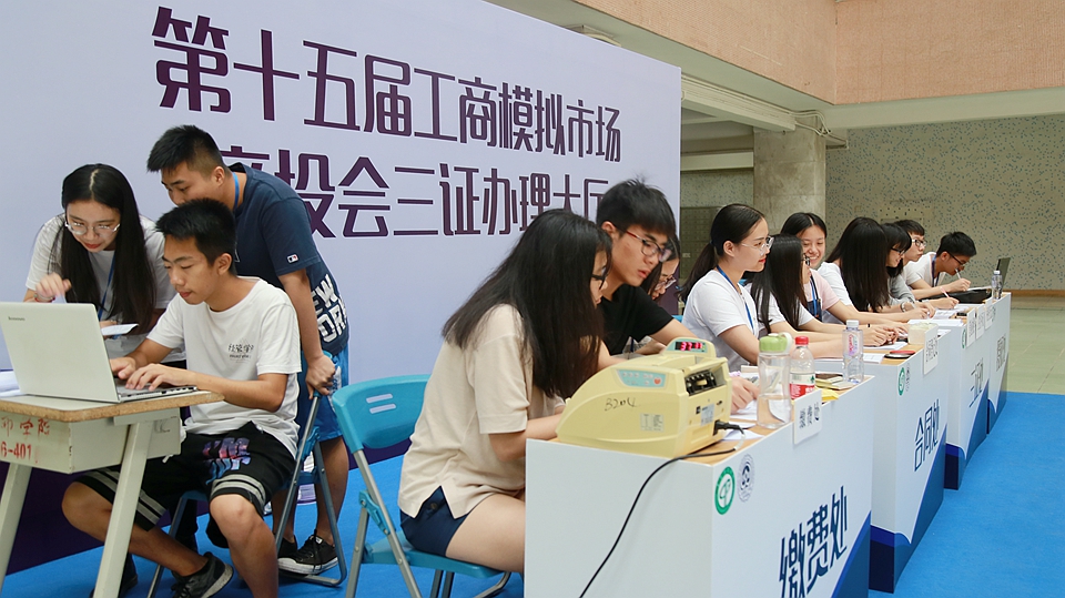 为确保太阳城创新创业实训项目——第十五届工商模拟市场的顺利进行,5月10日下午,太阳城于莞城校区小剧场组织开展了第十五届工商模拟市场竞投会,并于四号楼大厅进行三证办理及合同签署。本次活动主要面对参与工模报名摆摊且企业计划书审核过关的团队开展。