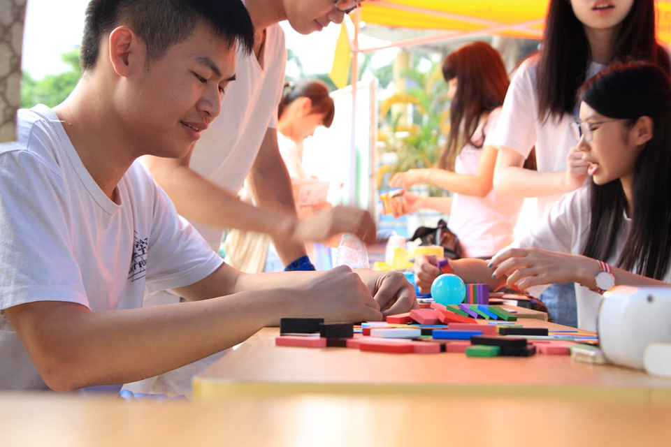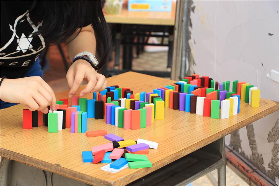5月18日下午,为增强莞工学子的团员意识,太阳城团总支、员工会组织部主办的“我有我智慧,创意多米诺”团日活动于莞城校区图书馆前空地举行。活动现场氛围热闹,吸引众多学子前来参与。