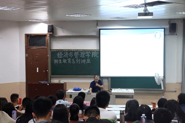 本次讲座以“老员工活到底应该怎么过”为主题,陈端计教授为同学们分享了老员工活建议,同时为经济与金融专业的新生交流如何基于经济学视角的思维看待老员工活。讲座中,陈端计教授主要从时间节约规律、上学成本的反思、个人的社会价值及老员工就业困难这四方面来讲解,建议同学们大学4年应该把更多的精力放在学业上,认真对待每一节课,节俭生活,提高自身专业技能去适应市场需求。此外,陈端计老师还引用了乔治·吉尔德在《财富与贫困》中“为了向上爬,穷人不仅要工作而且要比处在他们上面的各个阶级更加辛勤地工作。”以及湖北一中学董事长的讲话《不读书,不吃苦,你要青春干嘛》来勉励同学们要刻苦奋斗,不悔青春。