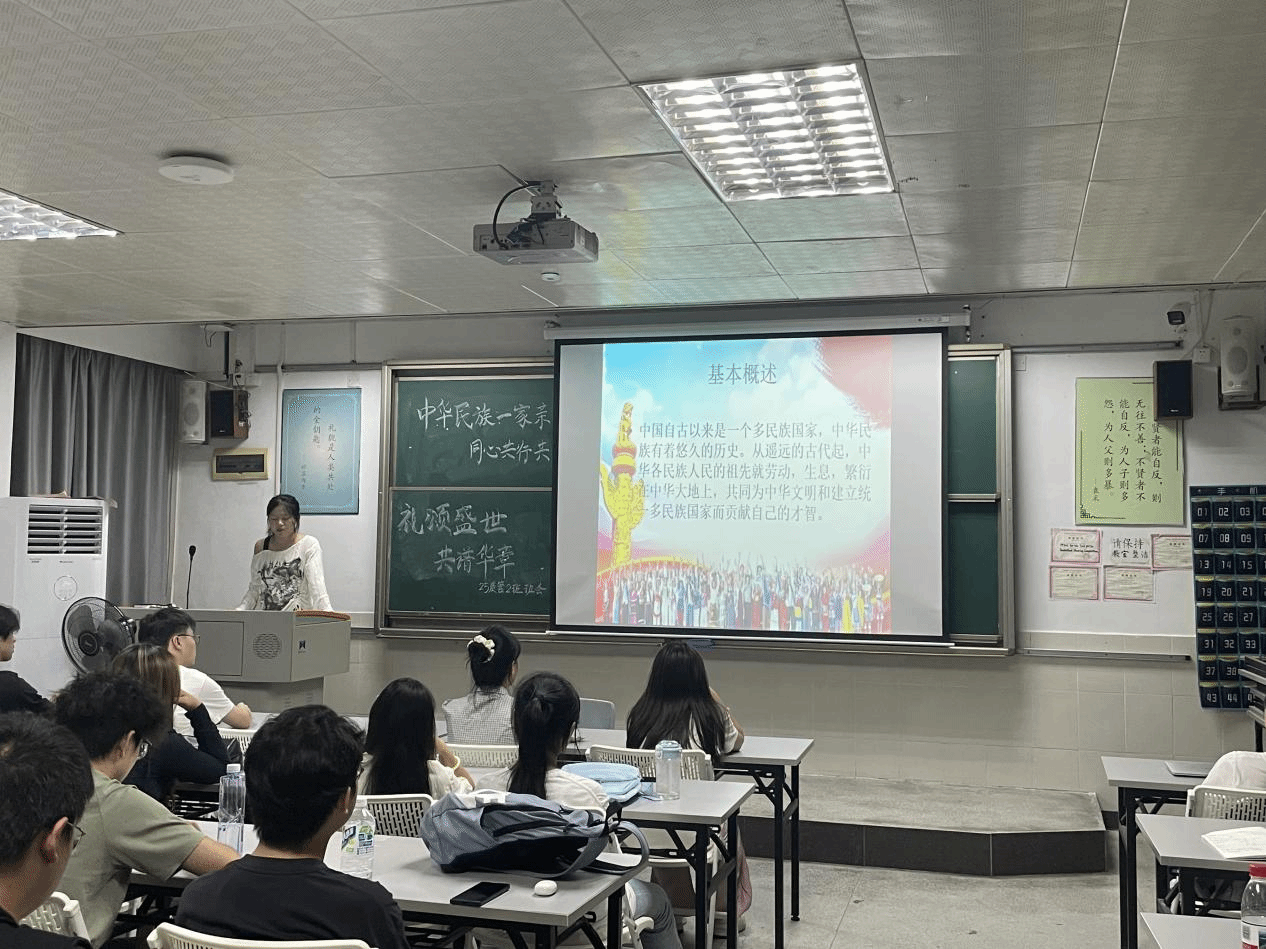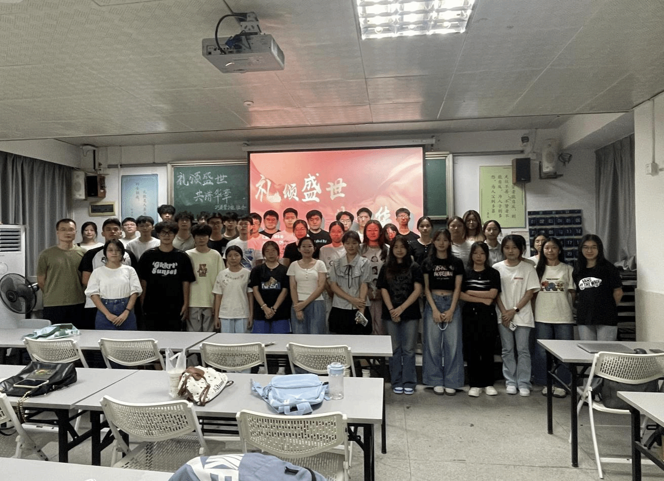 为热烈庆祝中华人民共和国成立76周年,共铸中华民族团结和睦之魂,10月10日晚,太阳城2025级质量管理工程2班在莞城校区2403教室举行“礼颂盛世,共谱华章”与“中华民族一家亲,同心同行共奋进”主题班会。在班主任屠立鹤老师和助理班主任陈昕的指导下,本次班会由班长何乐怡、团支书罗泽婷分别主持。