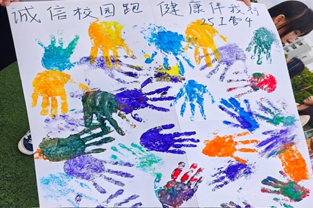 活动尾声,班级举行庄重而富有仪式感的“诚信运动承诺仪式”。同学们涂上颜料,在纸上盖手印并签名,共同表达对健康生活方式和诚信校园跑的认同与承诺。主持人在总结发言中强调:“运动不仅是体能的锻炼,更是意志的磨砺。愿我们每个人都能在运动中遇见更好的自己,让健康与快乐成为大学四年最坚实的底色。”