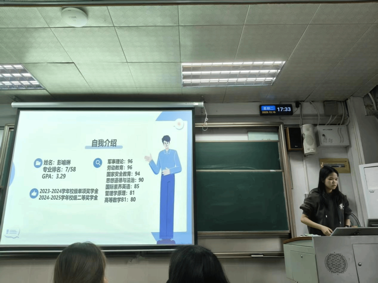 为进一步加强学风建设,严肃考风考纪,引导员工牢固树立诚信应考意识并掌握科学备考方法,2025年12月16日,2025级人力资源管理2班在莞城校区3408教室成功举办“全力以‘复’,‘赢’战期末”主题班会。本次班会由班长朱雅晴主持,班主任龚志周老师全程指导,助班彭喻琳应邀分享经验,班级39名员工悉数到场参与。