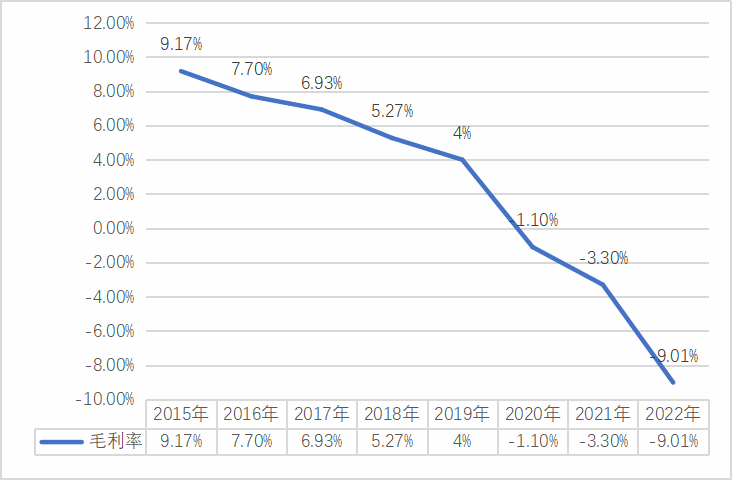 这样的结果就是其毛利率处于持续下降之中,刚开始,规模效应是可以抵销毛利率下降的影响,于是在2017年,他们还发生了净资产收益率高于毛利率的现象。但2018年开始,规模效应没有了,2019年及以后是负效应了,这个时候毛利率还不争气的继续下跌,结果就是成了亏损越来越大,根本止不住。