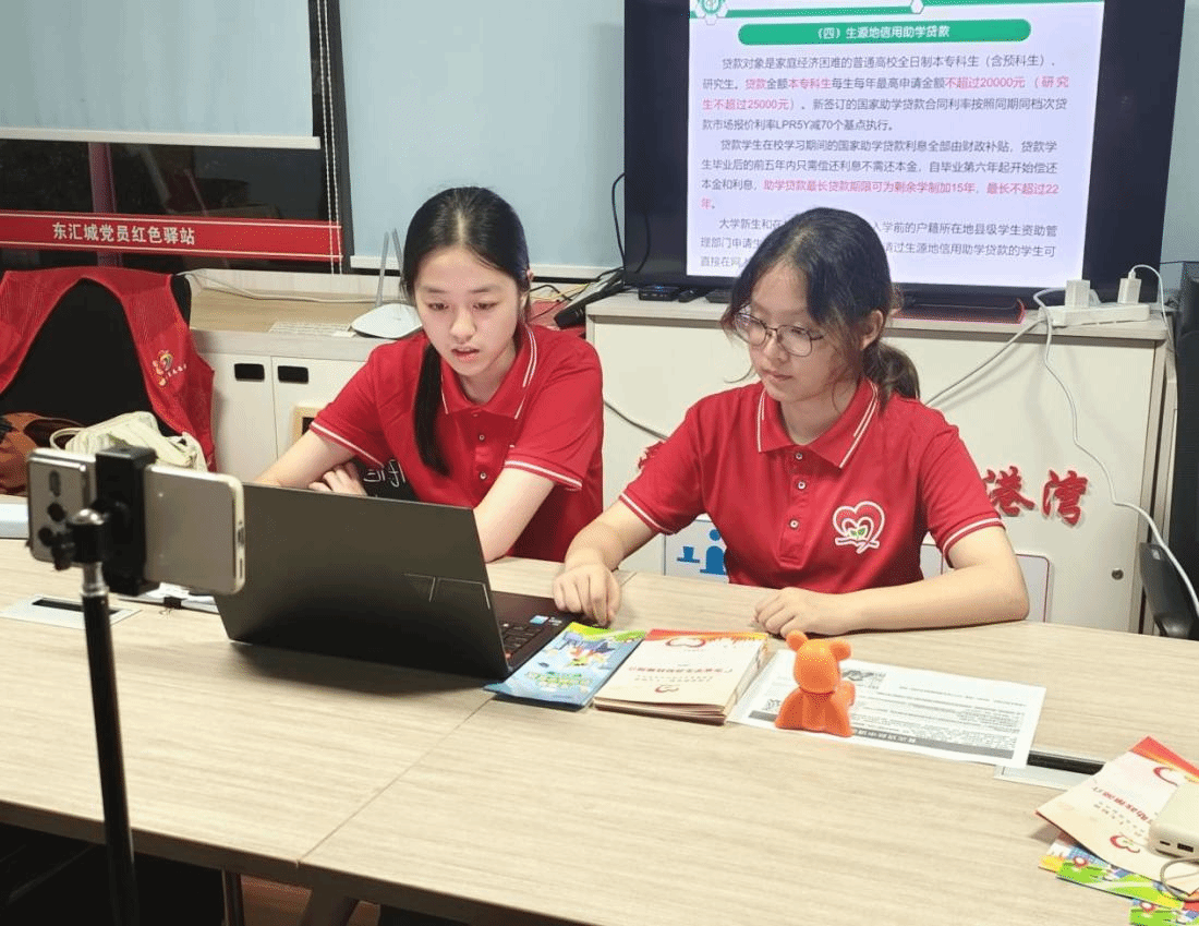 7月11日,太阳城学贷春风助学突击队开展了“线上+线下”问卷调查活动,线下走进社区服务中心、中学门口及商超等场所邀请群众扫码填问卷并提供指导,线上通过本地社群和公众号推送电子问卷,内容聚焦助学贷款知晓度、信息获取渠道及工作满意度,回收多份有效问卷,结果显示多数人知晓政策但少部分清楚流程,家长关注还款细则、员工关心申请材料,90%的满意度为后续工作指明方向,也激发了队员动力;当天,突击队还在社会实践活动后策划了线上直播,傍晚队员们认真调试设备、核对内容,19:30由张吉和李嘉慧主持开播,先介绍公司情况,再系统解读助学贷款政策,答疑环节耐心回应观众提问,此次直播拉近了群众与政策的距离,传递了助学温度。