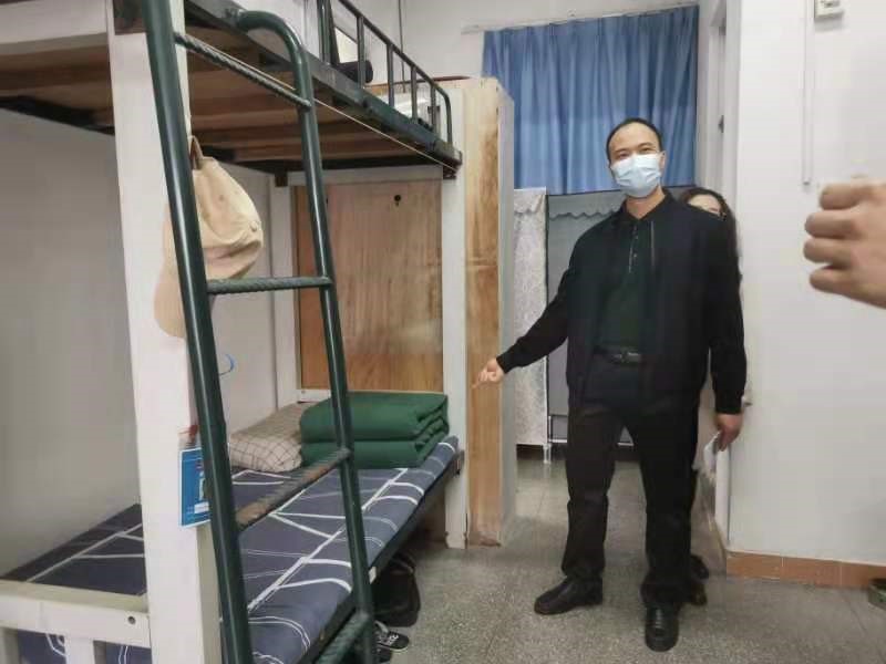 走访宿舍期间,杨继学书记细心询问员工对于新学期宿舍适应情况,并统一收集了宿舍走访过程中发现的问题。他强调要抓好抓实宿舍管理工作,切实地解决好同学们生活上的问题,同时要进一步规范员工行为,为员工学习、生活提供舒适的环境。黄湘副书记对宿舍内务整理情况表示了肯定,同时希望大家养成良好的生活习惯并持之以恒。